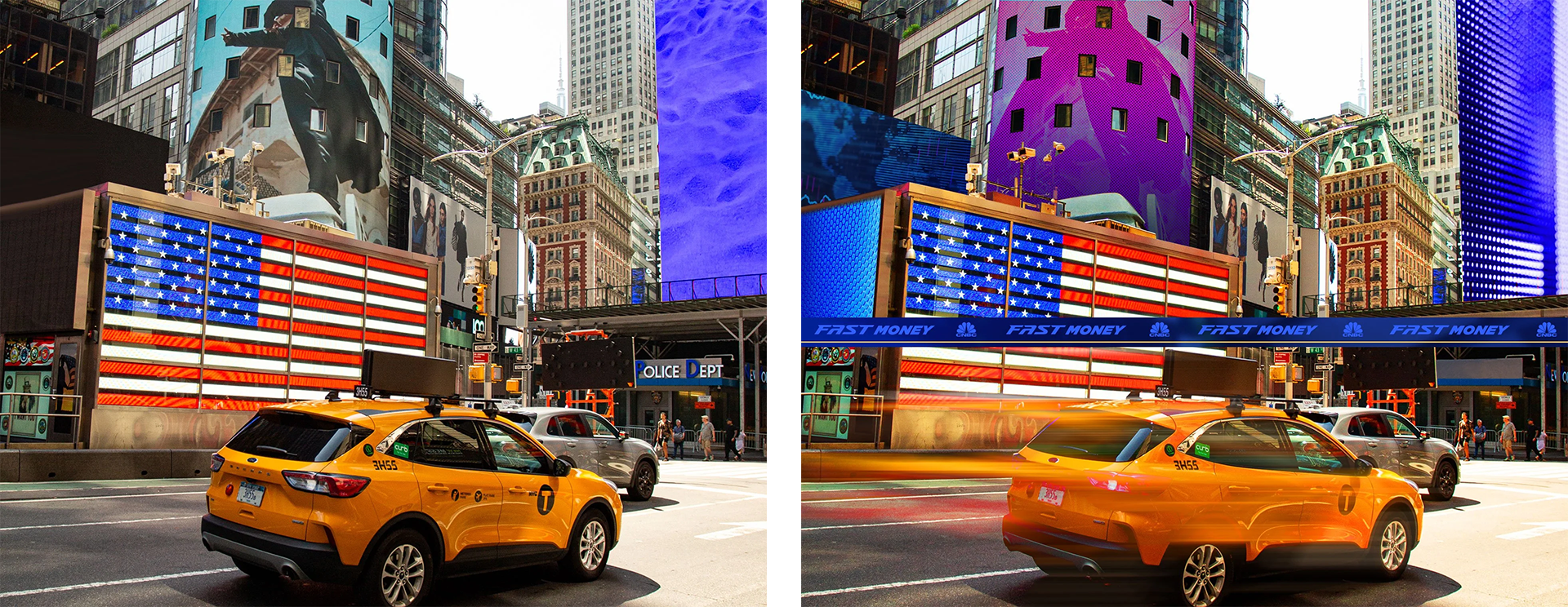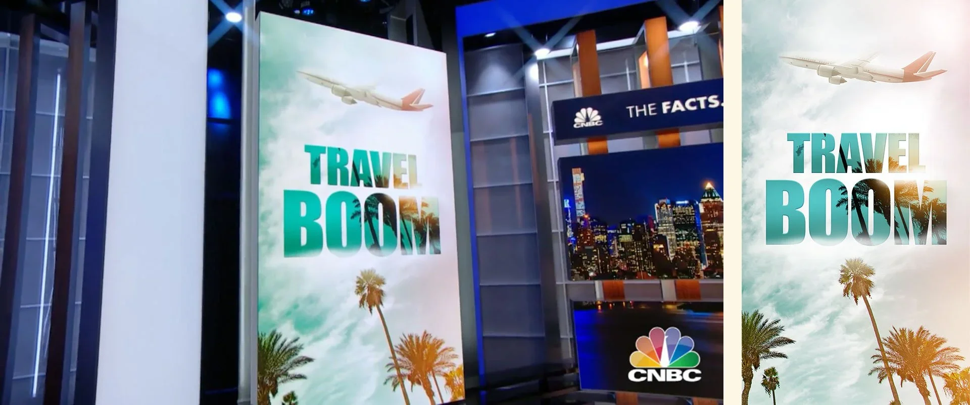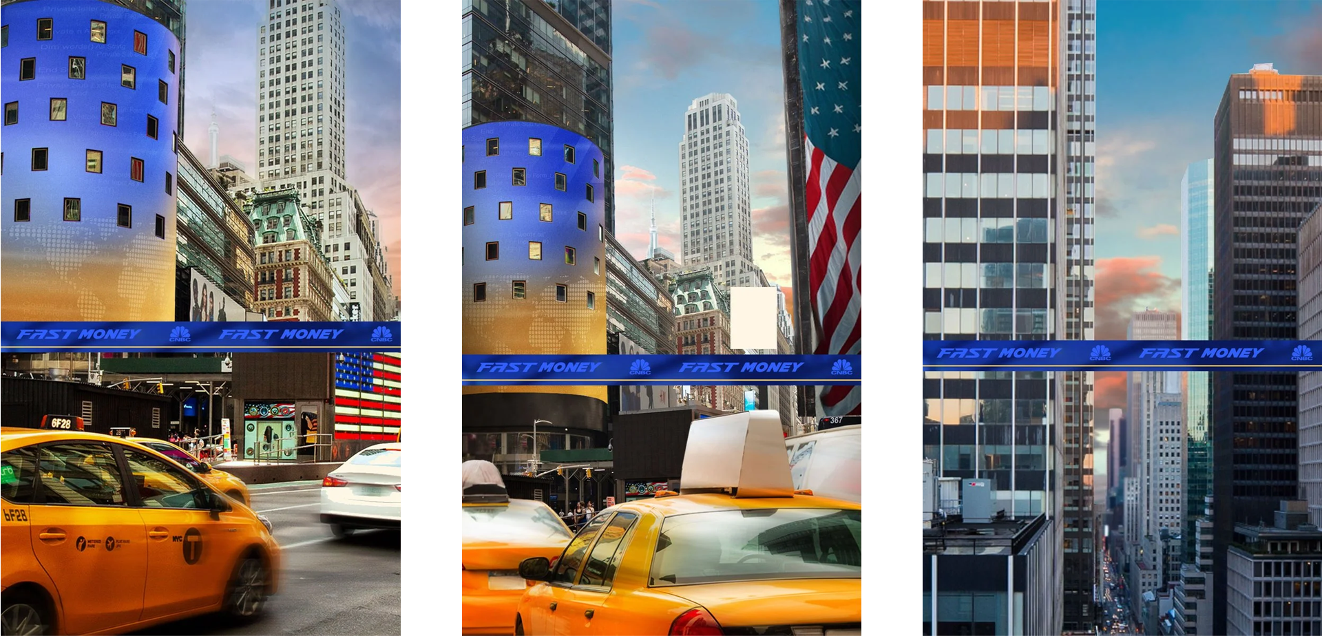 Request: Set designs for Fast Money at the NASDAQ studio. I worked with art director Nick O’Connor and show producers on composition and color. Before and after photos shown below.